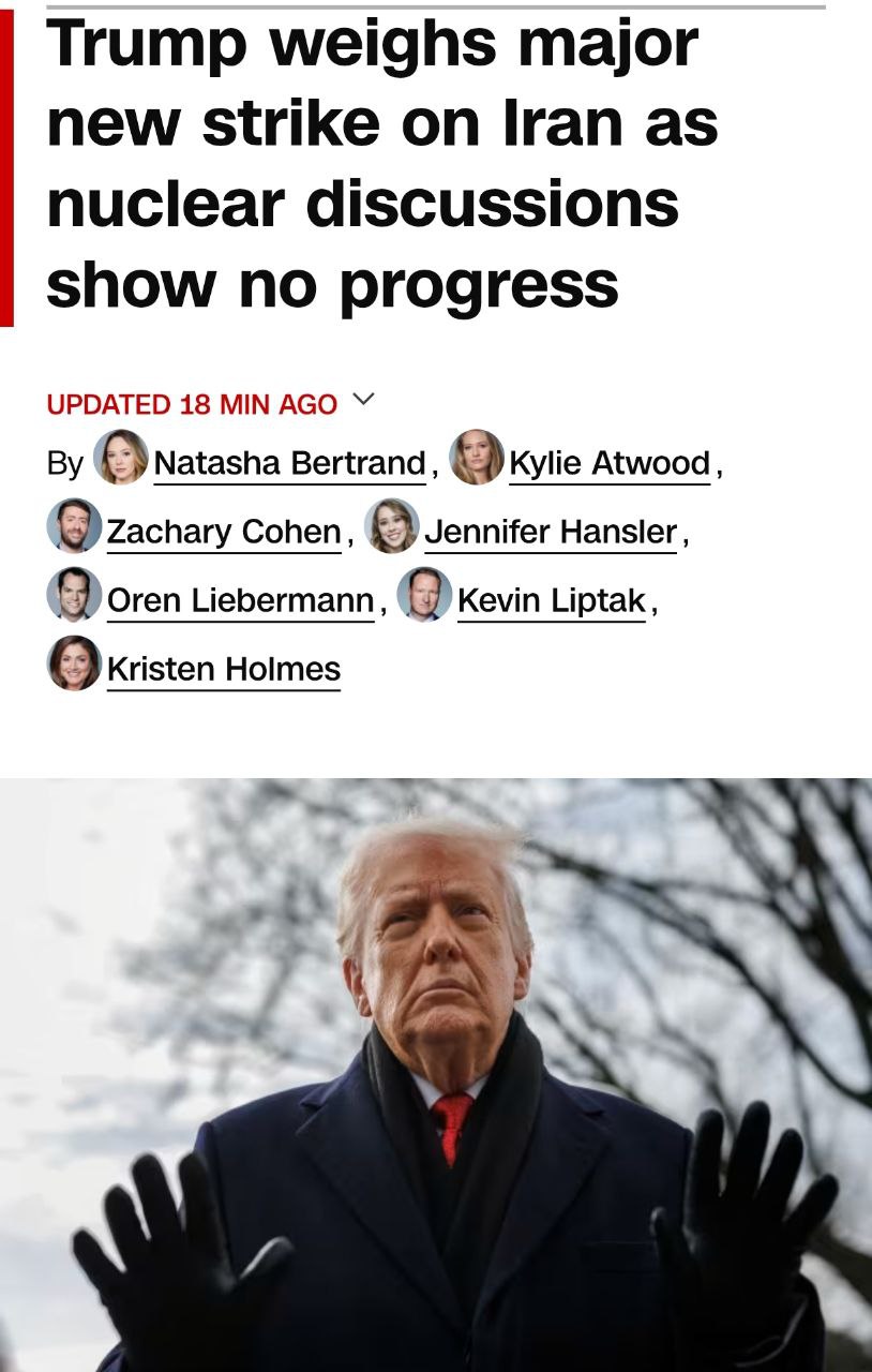 Про підготовку удару повідомляє і CNN. За даними телеканалу, президент США Дональд Трамп розглядає завдання потужного удару по Ірану після безрезультатних переговорів між Вашингтоном і Тегераном щодо обмеження ядерної програми країни, виробництва та дальності балістичних ракет. Трамп обговорює різні варіанти дій, включаючи удари по ядерних об'єктах, військовій та урядовій інфраструктурі, а також по представникам керівництва, які відповідають за безпеку.