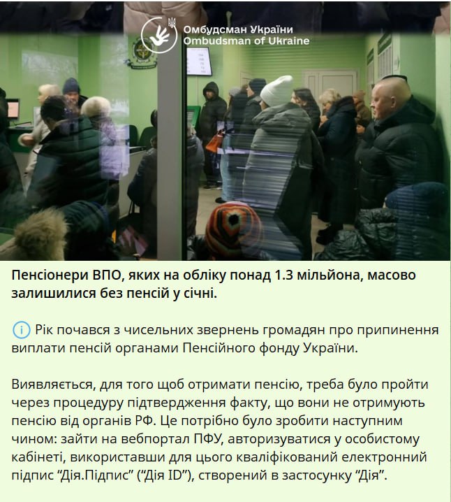 В результаті українці були змушені особисто звертатися до відділень Пенсійного фонду, що викликало черги, напругу та фактичний колапс роботи установ.