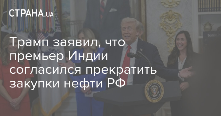 Президент США Дональд Трамп заявив, що прем'єр-міністр Індії Нарендра Моді погодився припинити закуповувати російську нафту.
