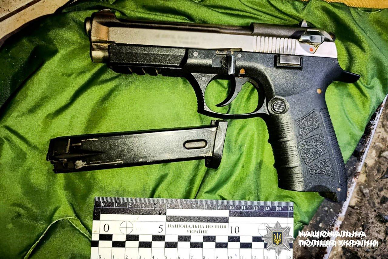 Під час обшуку поліцейські виявили та вилучили пістолет, автоматичну зброю, три пневматичні гвинтівки, штик-ніж, 29 холостих патронів, 7 гільз, трубку для куріння та фольгу із шарами психотропної речовини.