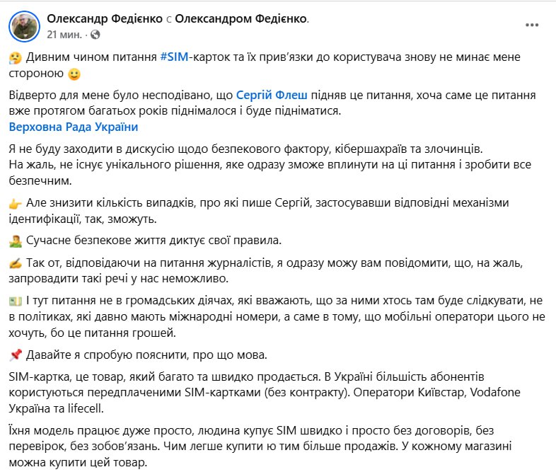 Нагадаємо, ще у травні минулого року Федієнко говорив, що Верховна Рада може ухвалити законопроект для боротьби з використанням Росією українських сім-карток у своїх дронах.
