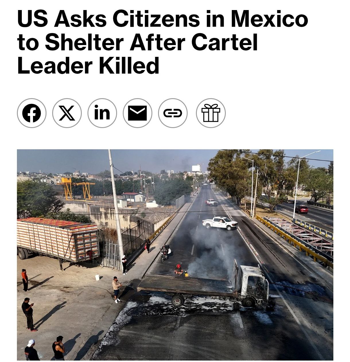 Тим часом, як повідомляє агентство Bloomberg, США закликали своїх громадян у Мексиці сховатися у сховищах після вбивства лідера наркокартелю.