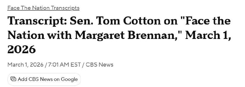 Про це заявив телеканалу CBS News Том Коттон, республіканець, який очолює комітет Сенату з розвідки.