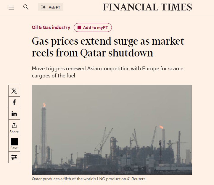 У Європі базовий індекс Stoxx Europe 600 впав на 2,9% - це різке денне падіння із запровадження президентом США Дональдом Трампом світових мит у квітні минулого року. Причому воно відбулося на тлі зростання цін на газ у Європі ще на 20%.