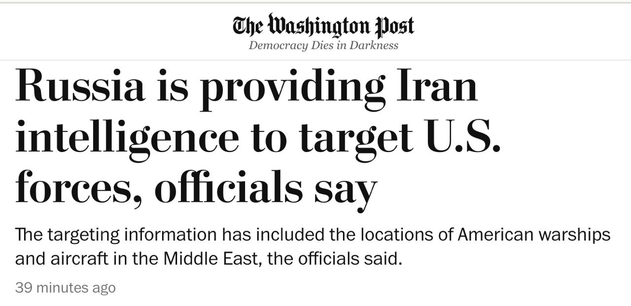Росія надає Ірану розвідувальну інформацію для планування ударів по американським військам на Близькому Сході.